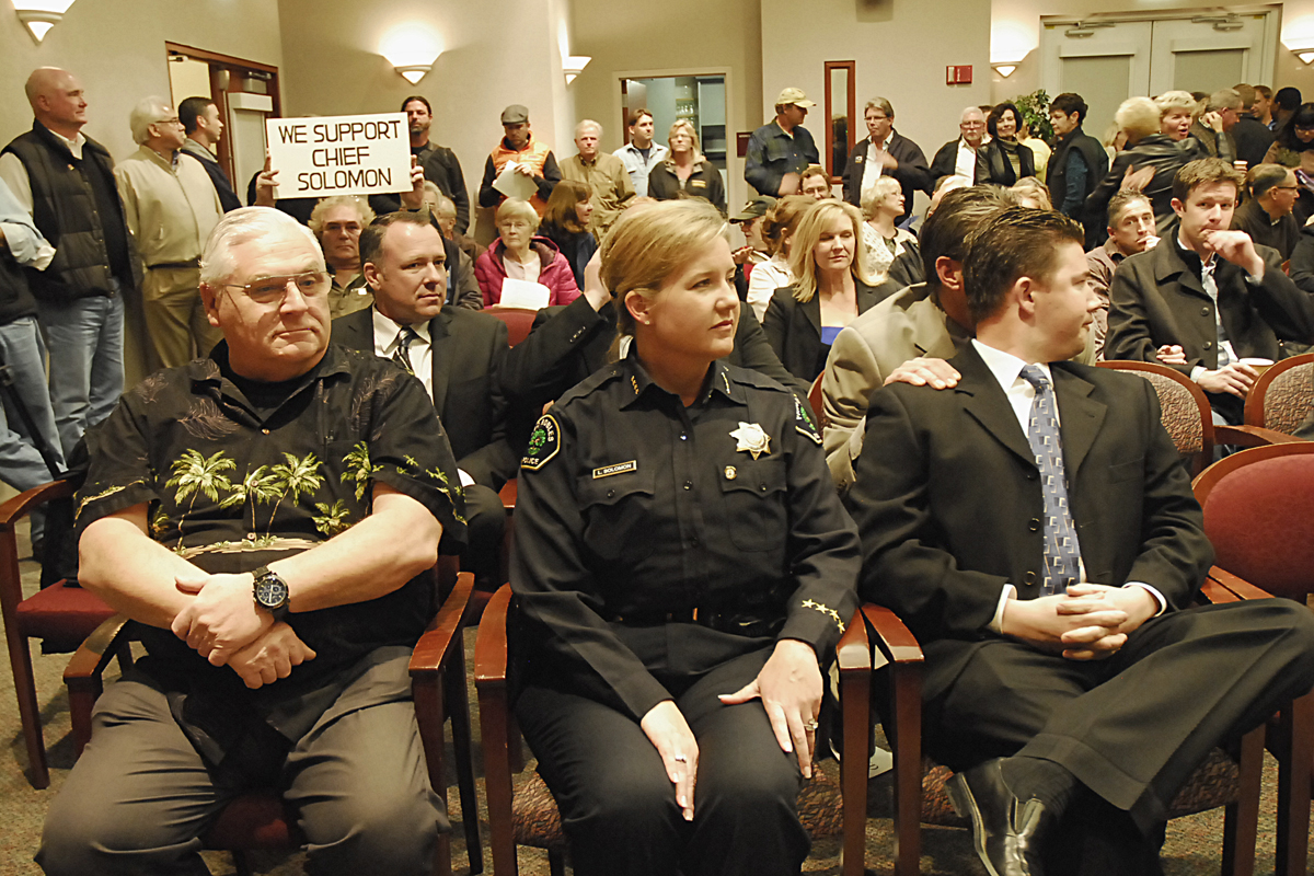 Solomon won her chief’s post without competition. In 2007, the city council agreed not to do a search for a new chief and instead took the recommendation of App and the former police chief Dennis Cassidy, to name her to the city’s top cop position. No others were invited to apply.