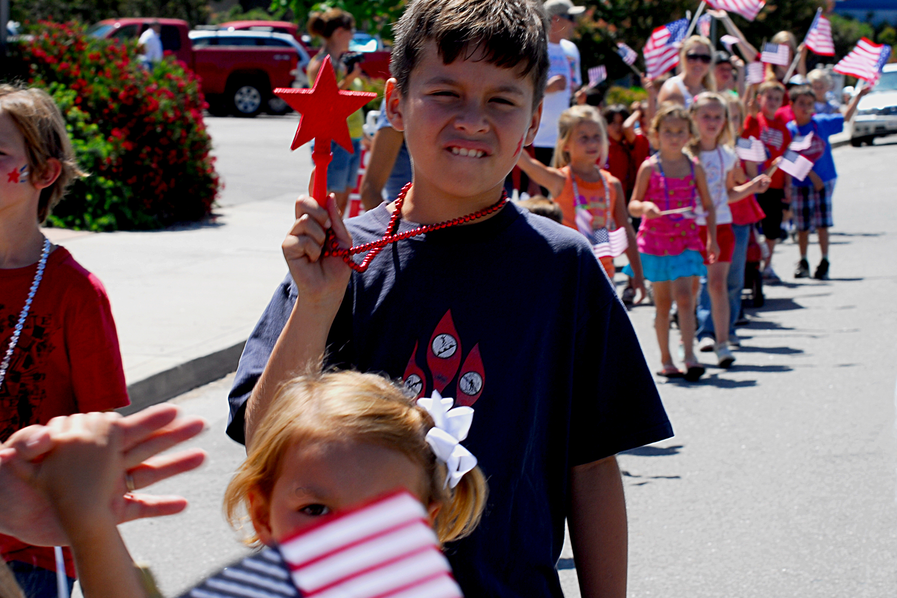 Kids from The Learning Tree Preschool in Atascadero and their parents patrolled El Camino Real on the 4th of July, waving the American flag and shouting to passing motorists, “Happy Birthday, America!”