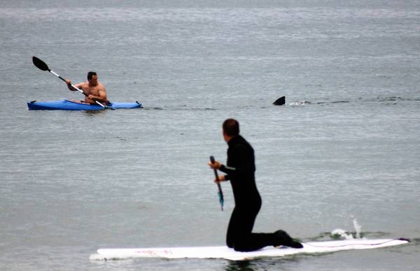 Also on the same day, in the Atlantic Ocean in the Cape Cod area, a great white was trailing a man in a kayak.