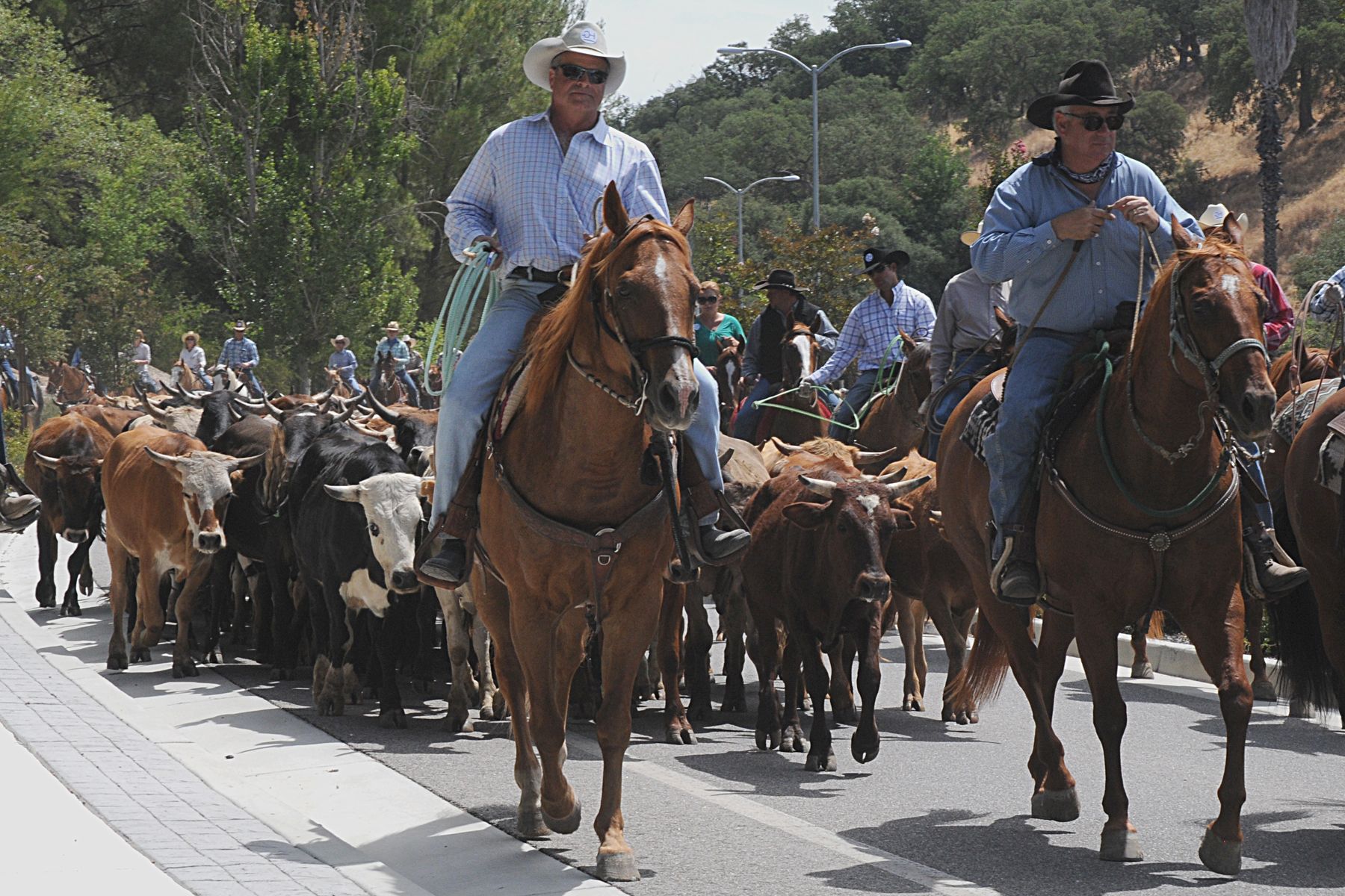 Tradition lived on in Paso Robles Wednesday as the annual cattle drive through city streets signaled the start of the California Mid-State Fair. A riderless horse was led along the route in memory of the late George Randolph Hearst Jr., chairman and president of the Hearst Foundation who died June 25 at the age of 84. A three-mile trot for about 50 head of local cattle ended at the Riverside Avenue entrance to the fair