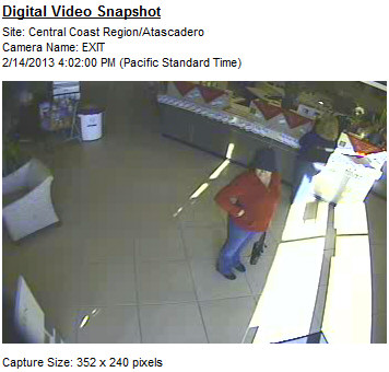 The suspect was wearing jeans, a red shirt and a blue hat. Police are asking anyone with information about the robbery or suspect to call Atascadero Police at (805) 461-5051.