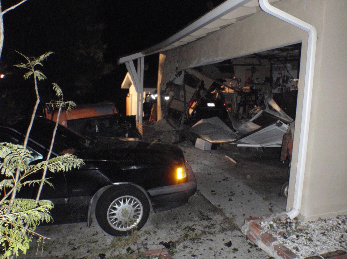 DUI Garage CrashAn intoxicated San Luis Obispo driver did not make it home Wednesday night, but did find a garage to park her car.