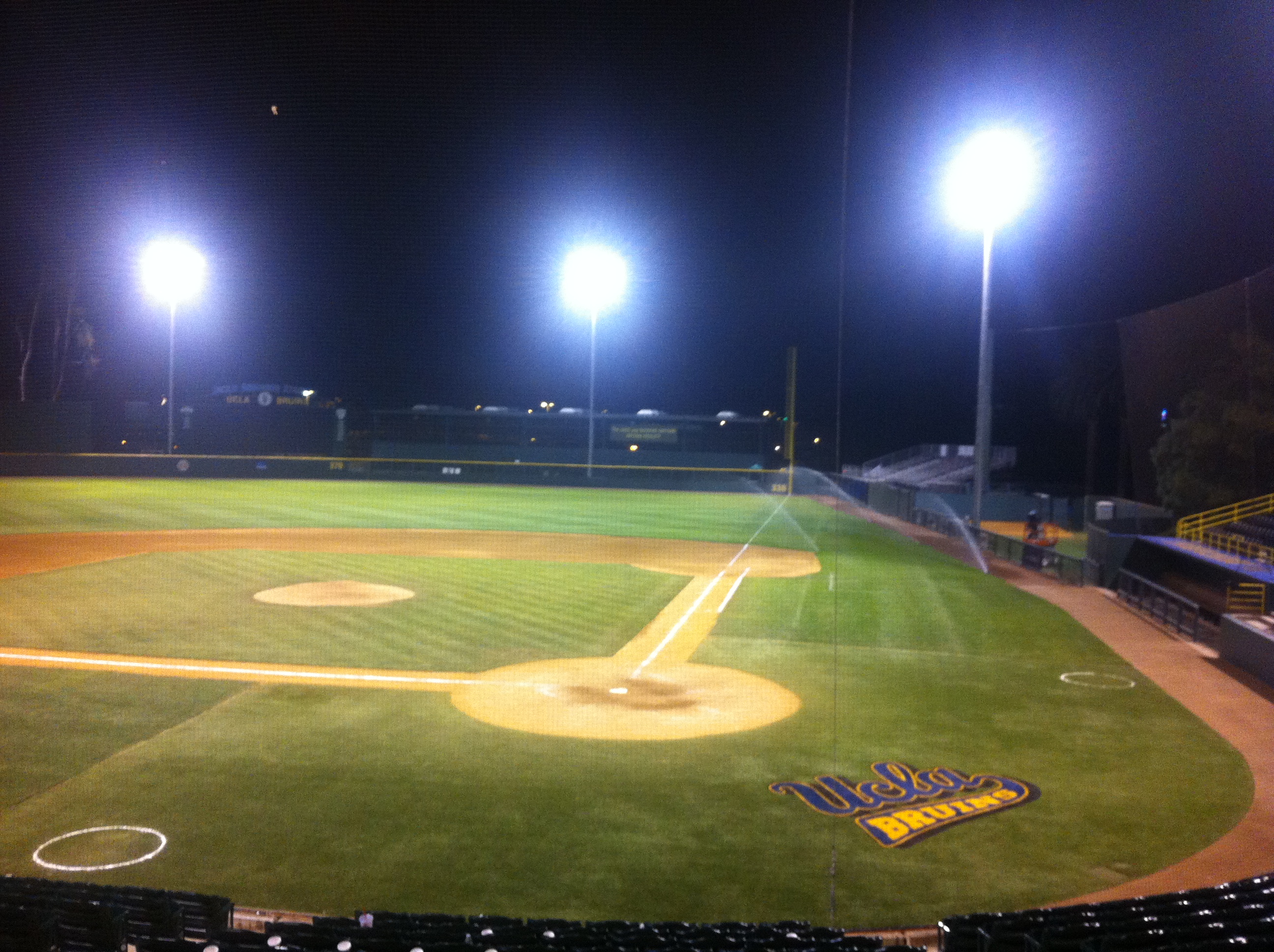 But, with two outs and the bases loaded in the sixth inning and UCLA designated hitter Kevin Williams at the plate with the Bruins trailing 4-1, the lights shined too brightly for Cal Poly right field Nick Torres to handle. Williams hit a high fly ball that Torres lost sight of in the stadium lights. Three runs scored, and the Mustang lead evaporated.