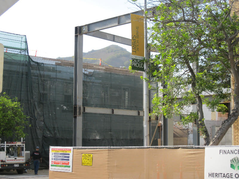 Going, going Monterey Street view. Steel framework encloses the disappearing view of San Luis Mountain.