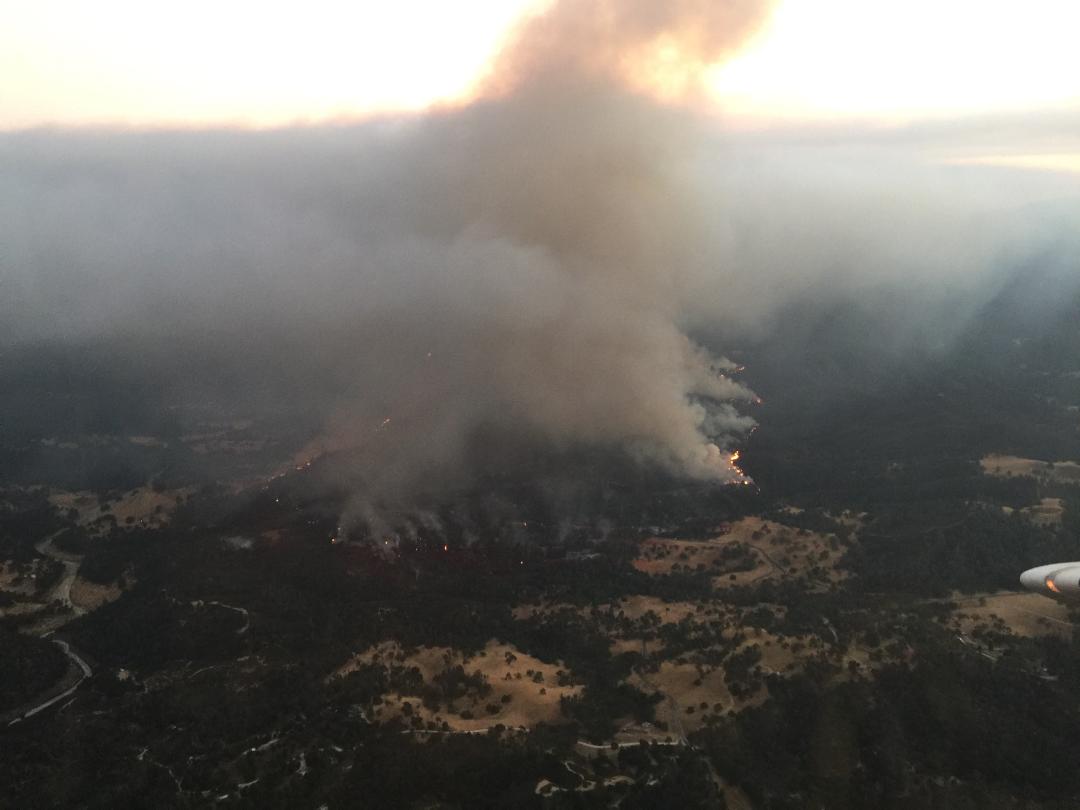 The fire, which is fueled by grass and drought stressed oak trees, is spreading primarily in a northern direction.