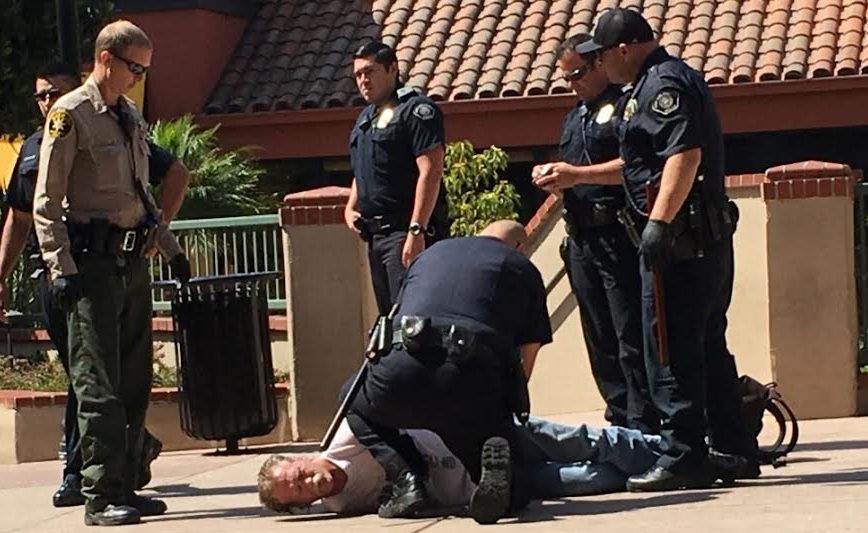 On Sunday morning, the man was attempting to light himself on fire in front of the Barnes & Noble Bookstore on Marsh Street when police threw him on the ground. The man then yelled and cursed at police as they took him into custody.