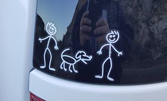 On Nov. 10 at about 9:30 a.m., Alan Estes of Morro Bay parked his SUV on Hiquera Street with plans to take his dog for a walk. After Estes walked around to the passenger side door to retrieve his jacket, he heard a couple men talking about the two stick figure men and a dog on the SUV’s back window.