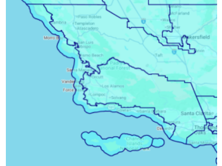 The district ran up the coast some 200 miles from Oxnard to the Monterrey County line. The boundaries of the district ran along the shoreline until they went in to capture a democrat majority community and then the line returned to the shore. The lines for Capps’ district disappeared during high tide!