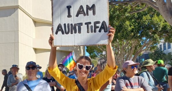 In the rally promoted by the SLO County Democratic Party, party leaders and elected officials spoke and participated, including SLO County supervisors Bruce Gibson, Dawn Ortiz-Legg and Jimmy Pauling; party chair Tom Fulks; and SLO City Councilmember Emily Francis. Speakers rallied against Trump, ICE and fascism.