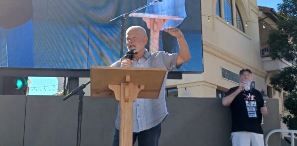 Bruce Gibson at No King rally in San Luis Obispo, photo by Jeff Specht