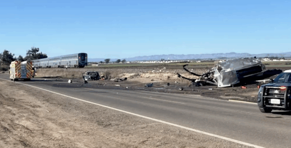 Shortly after 4 p.m., the train crashed into the semi-truck injuring four people and causing a temporary closure of a portion of Highway 1. There were 218 passengers on the train.