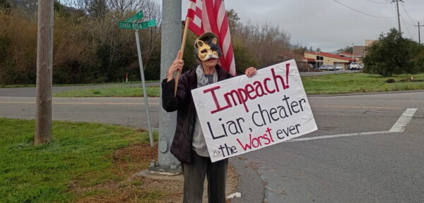 At 10 a.m., protesters gathered off Highway 1 at Kansas Avenue. They held signs seeking the impeachment of President Donal Trump and the abolishment of ICE.