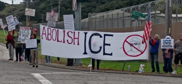 “We are out her protesting because ICE is kidnapping people out of the SLO County Jail and the SLO Sheriff’s Office is being disingenuous about the extent about their cooperation with ICE,” according to a protestor. “About 60 people this year have been abducted from the jail or the courthouse by ICE.”
