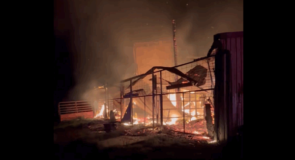 Shorty after 5 a.m., a caller reported the blaze burning at a barn on Vaquero Road. Firefighters arrived to find hay burning in the barn. Multiple agencies worked to extinguish the blaze.