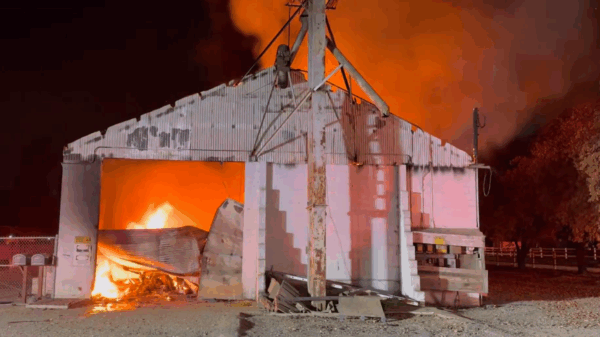 At 3 a.m., a 9-1-1 caller reported the fire burning on Bull Canyon Road across from Bob Woods Place. Fire crews from Santa Maria, San Luis Obispo County and Santa Barbara County battled the blaze.