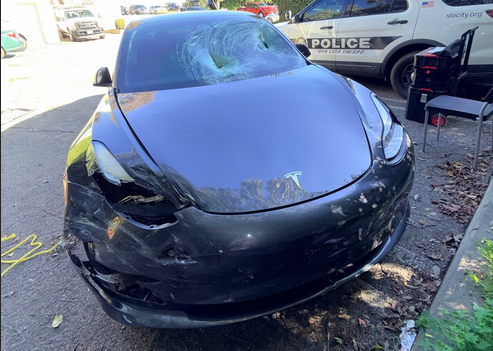 Eyewitnesses described the suspect car as a dark gray Tesla.