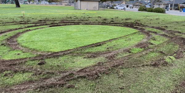 For the second time in as many weeks, a driver drove onto the grass at 16th Street Park. The driver’s actions tore up grass and damaged the park.
