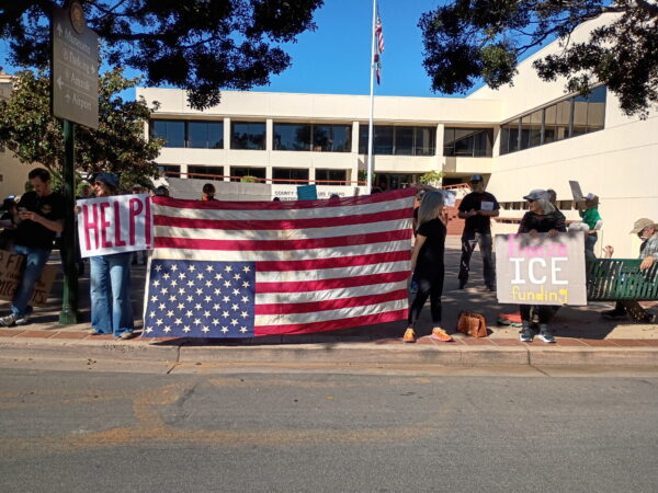 Dozens of speakers at Tuesday’s meeting denounced ICE agents and the sheriff’s office. Many of the anti-ICE speakers are involved with 805 UndocuFund, a nonprofit that trains volunteers to track and work against federal law enforcement.