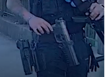 As the first officer on the scene stepped out of his car, the suspect dropped to one knee and pointed what appeared to be a gun at the officer. The officer yelled at the suspect, “hey, stop, stop, stop.” The officer then fired a single shot from his rifle which struck the suspect, who fell to the ground.