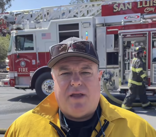 Joe Little, SLO Fire Department Emergency Manager, beside the scene of the battery fire on Luneta Drive