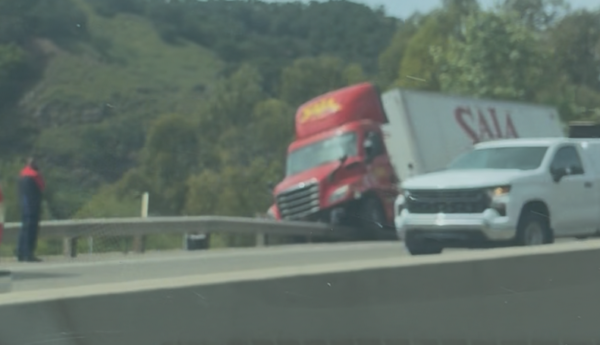 Shortly after 2:30 p.m., the vehicles were headed southbound when they collided. The 28-foot long 30,000-pound semi-truck was left straddling the guard rail.